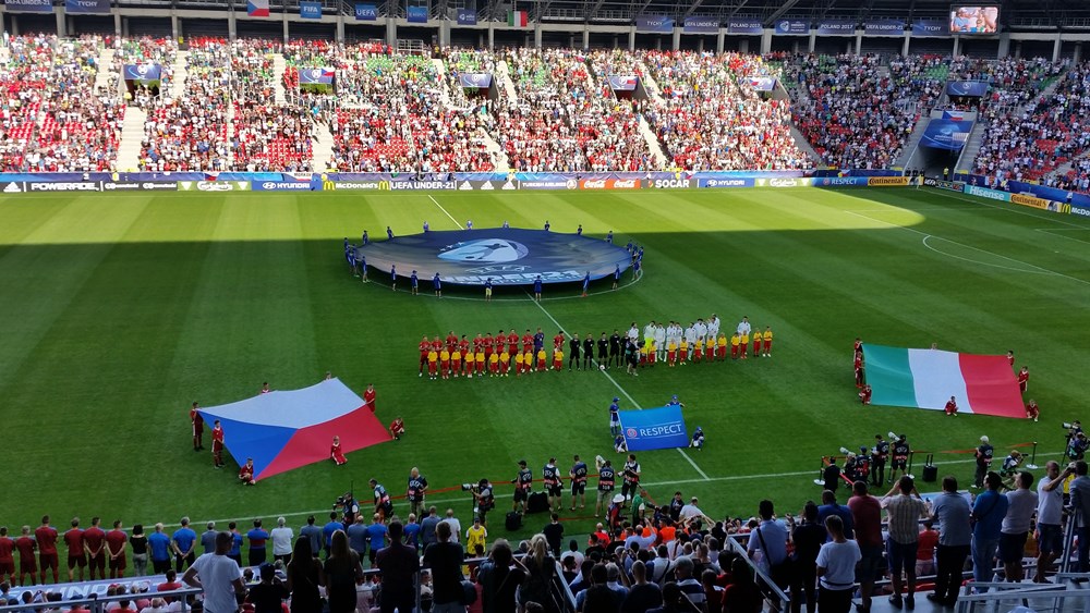 W lipcu 2015 roku powierzono nam nadzór oraz obsługę artystów jak i komentatorów w trakcie otwarcia Stadionu Miejskiego w Tychach. Ponownie zaufano naszej firmie i powierzono odpowiedzialne zadanie w trakcie Mistrzostw Europy U21. Zlecono nam dostawę, konfigurację oraz obsługę wszystkich konferencji prasowych z udziałem trenerów jak i zawodników grających na tyskiej arenie.