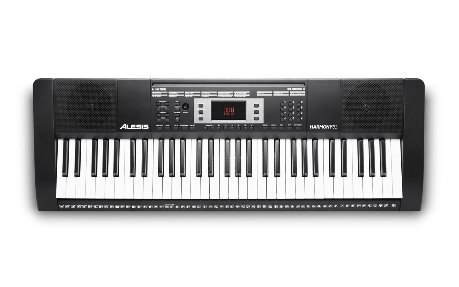 Alesis Harmony 61 MK II to markowy keyboard, który posiada 61 pełnowymiarowych klawiszy, wbudowane głośniki, 300 brzmień szerokiej gamy instrumentów – fortepiany, smyczki, instrumenty dęte blaszane, dęte drewniane, perkusję, gitary, syntezatory, a nawet efekty dźwiękowe! Możesz nakładać na siebie brzmienia w trybie „Dual” lub dzielić klawiaturę w trybie „Split”. Harmony 61 MKII ma również wbudowane 40 piosenek demonstracyjnych i 300 rytmów pozwalających na tworzenie utworów w wielu różnych gatunkach. Możesz nawet nagrywać swoje własne utwory używając trybu „Record”.