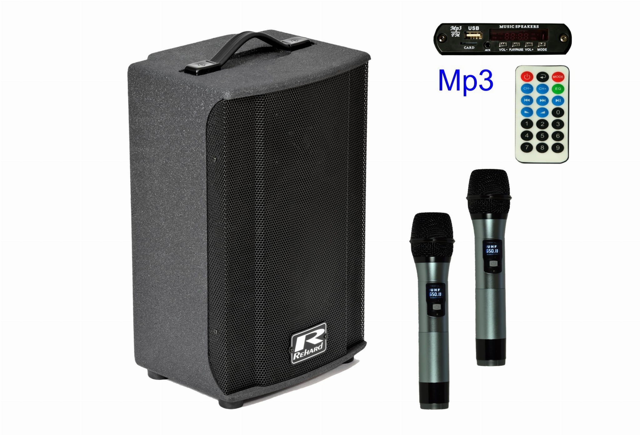 Zintegrowany zestaw nagłaśniający akumulatorowo-sieciowy o mocy 200Wat z głośnikiem o średnicy 10". Wyposażony w mikrofony bezprzewodowe, odtwarzacz MP3, Bluetooth, Tuner FM + Pilot. Posiada wbudowany mikser dźwięku umożliwiający jednoczesną obsługę 2 mikrofonów bezprzewodowych, 2 mikrofonów przewodowych i odtwarzacza audio.