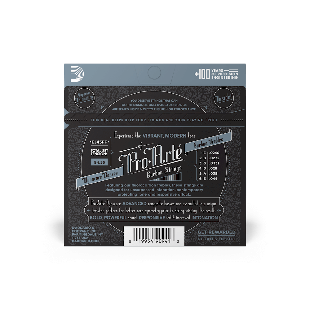 Pro-Arte' Carbon to jeden z najpopularniejszych klasycznych zestawów D'Addario, zapewniający doskonałą intonację i idealne połączenie tonu, jasności i projekcji.Skręcony, wielowłóknowy rdzeń kompozytowy strun basowych Dynacore tworzy doskonale reagujący atak z niezrównaną intonacją, podczas gdy wysokie tony zapewniają najjaśniejszy dźwięk spośród wszystkich klasycznych wysokich tonów D'Addario.Rezultatem jest nowoczesna projekcja tonalna i wyjątkowy charakter tonalny, uwielbiany przez klasycznych muzyków.Ten zestaw Normal Tension to nasz najlepiej sprzedający się zestaw napięć, preferowany ze względu na równowagę bogatego brzmienia, komfortu i dynamicznej projekcji.
