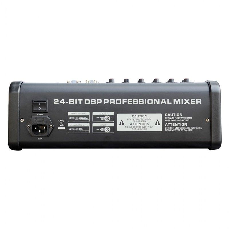 Każdy z sześciu torów konsoli audio posiada niezbalanowane wejście LINE IN/MIC przeznaczone do wprowadzenia sygnału o wysokiej impedancji. Może to być mikrofon, ale także gramofon, konsola DJ lub np. instrument klawiszowy. Na poziomie pojedynczego toru możemy kontrolować takie parametry, jak poziom podbicia sygnału dźwiękowego, zakres częstotliwości tonów wysokich, średnich i niskich, dodawać efekty, wyizolować lub wyciszyć pojedynczy tor, a także panoramować dźwięk między lewym i prawym kanałem szyny głównej. Dzięki wygodnym tłumikom suwakowym w łatwy sposób ustawimy interesujący nas poziom głośności, a ewentualne przypadki przesterowania zostaną szybko zasygnalizowane przez czerwoną diodę LED.