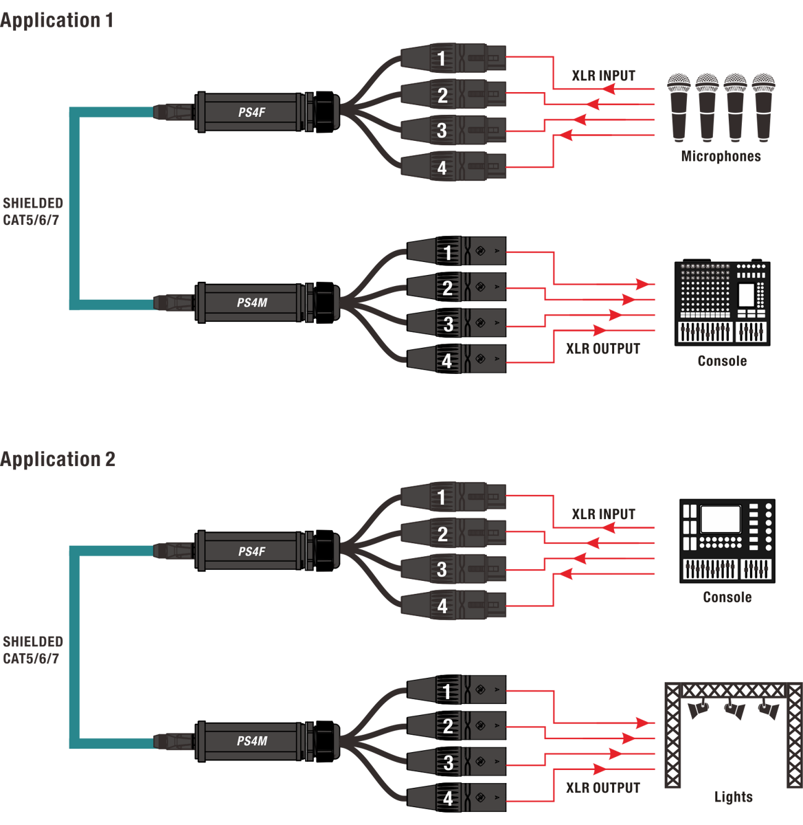 Konwerter adapter DMX męski XLR na RJ45 żeński Roxtone PS4M