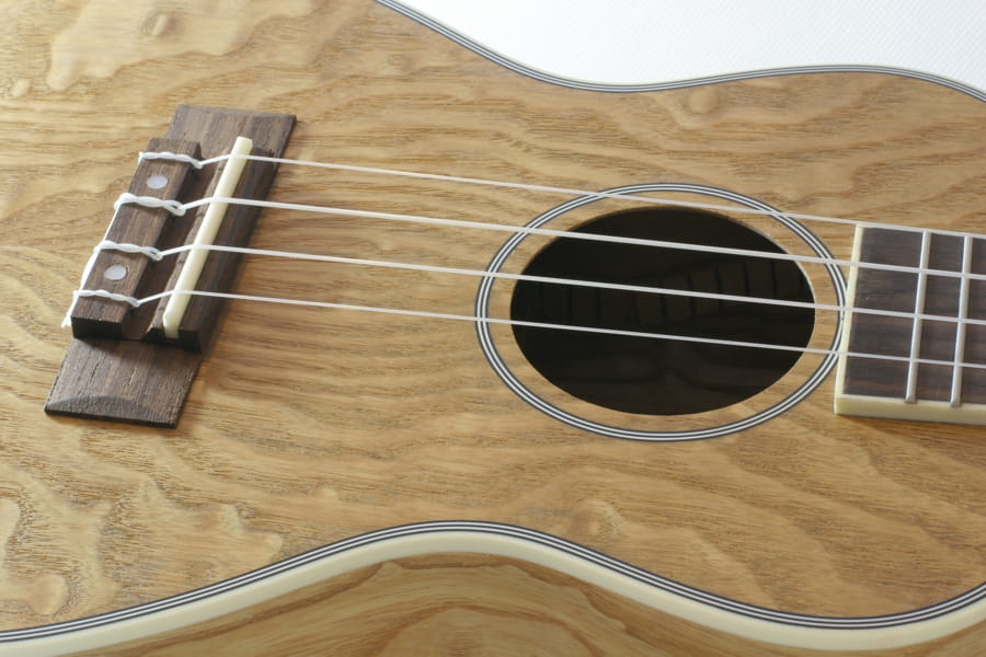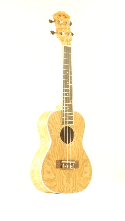 Ukulele koncertowe wykonane z jesionu bagiennego (korpus), gryf nato, progi niklowe, klucze Die Cast, biało-czarne żyłkowanie.