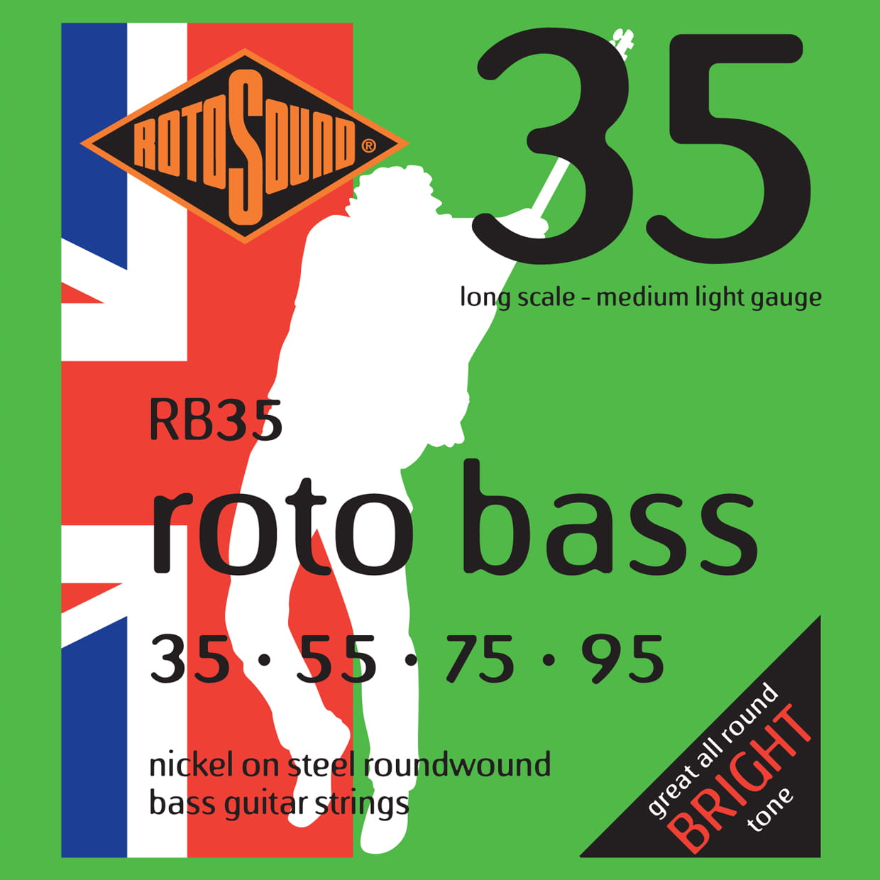 ROTOSOUND Roto Bass RB35 - Struny z niklowaną owijką, wyjątkowo jasno brzmiące. Końcówki niepokryte materiałem, dzięki czemu są tańsze niż seria RS. Zestaw strun do gitary basowej 4-strunowej