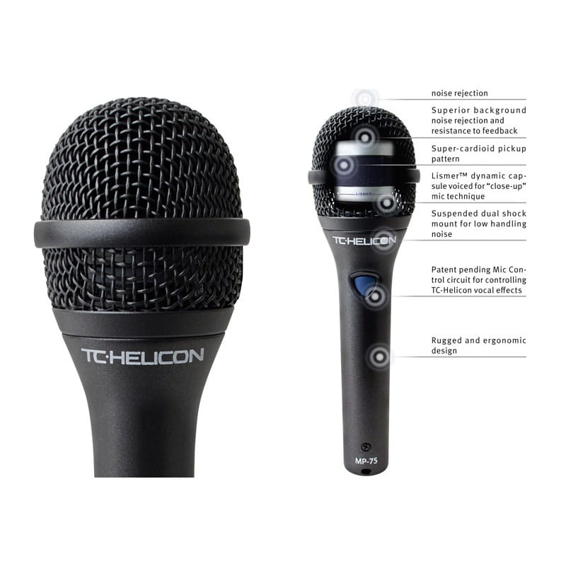 Projektując MP-75 konstruktorzy TCHelicon skupili się także na jego budowie, aby przetrwał trudy każdej trasy koncertowej, w jakiej będzie brał udział. Obudowa została odlana z metalu, zaś sam grill wykonany został z drutu z hartowanej stali i uzupełniony o piankowo-tekstylny pop-filtr. Zastosowanie we wkładce neodymowego magnesu pozwoliło na uzyskanie krystalicznego brzmienia i wysokiego sygnału wyjściowego.